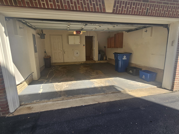 (below) Garage with door open, and access to the lower level