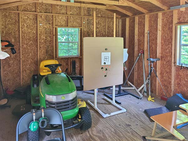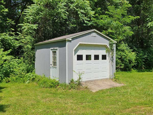 (above & below) Modern drive-in shed with garage door